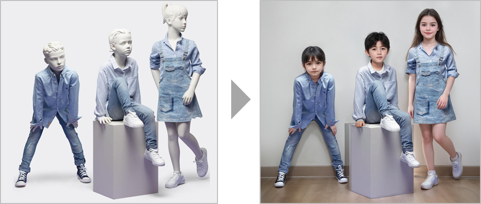 生成AIによってマネキンの試着画像からモデル着用画像を作成