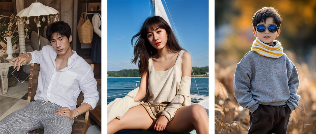 生成AIによって生成したロケーション、モデル及び商品画像 ※大幅なコスト・工数削減が可能(数分で生成可能)