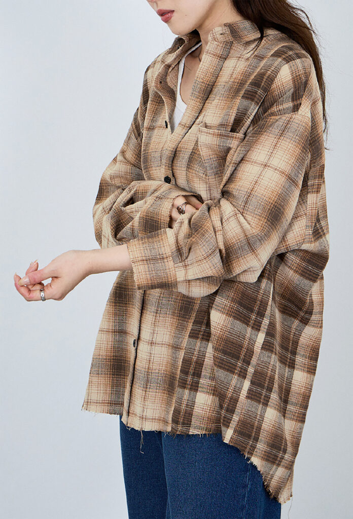 切り替えデザインとビッグシルエットが特徴のチェック柄ネルシャツ。程よいゆとりのロング&ルーズシルエットでリラックス感を演出しつつ、ベーシックな着こなしもかなう。ユニセックスなスタイリングも楽しめるアイテム。
