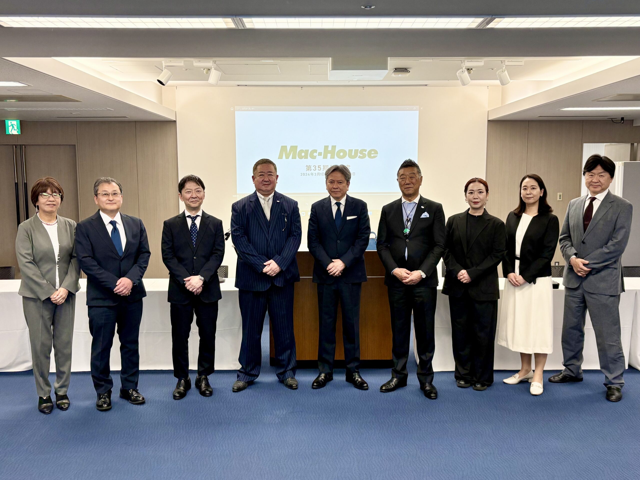 株式会社マックハウス(本社:東京都杉並区、代表取締役社長:石野孝司、東証スタンダード:7603)は、2025年5月21日開催の第35回定時株主総会において、取締役7名・監査役1名の選任議案が可決され、新経営体制が正式に発足いたしましたことをお知らせいたします。