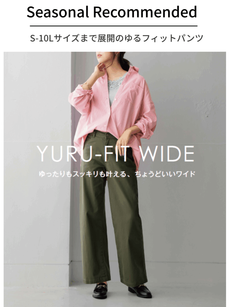 ~32アイテム、Sから10Lサイズまで揃うヒット商品「ゆるフィットワイドパンツ」も登場~