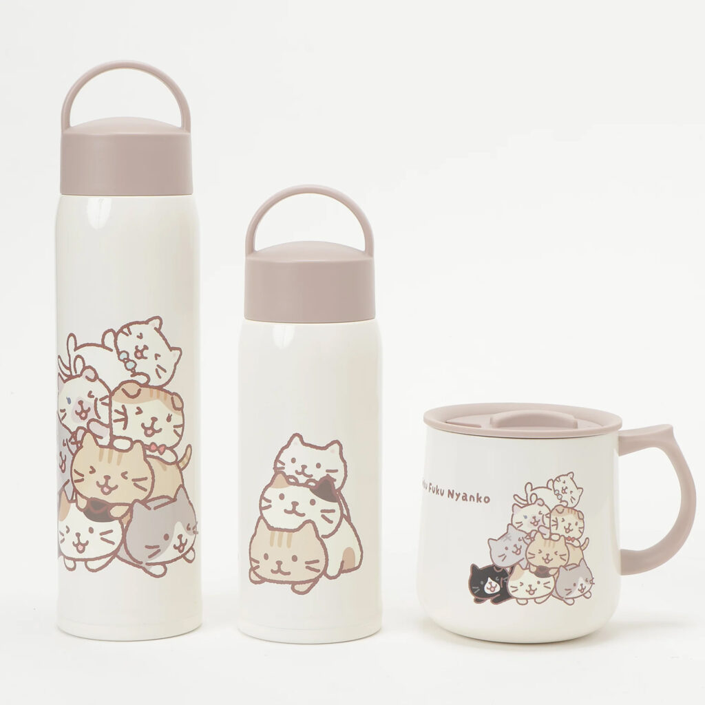 Fuku Fuku Nyanko 蓋付きステンレスマグカップ